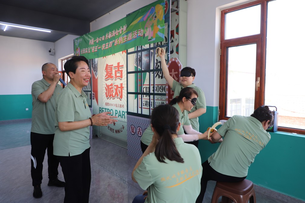 餐中設置的游戲環節更是激起了大家的參與熱情,笑聲和歡呼聲此起彼伏。“蒙眼吃香蕉”簡直就是歡樂的源泉!參與者兩兩一組,參與者戴上眼罩原地轉圈后迷失了方向,雙手小心翼翼地握著香蕉,一會兒往左偏,一會兒往右拐,那手忙腳亂的樣子,真是讓人忍俊不禁,坐著等待的同伴更是“心焦”,恨不得通過聲音指引隊友。有的摸索著找到隊友的嘴巴,有的卻誤打誤撞地碰到了隊友的鼻子,有的甚至直接越過隊友……現場爆發出一陣陣歡笑聲。最先吃完香蕉的隊員興奮得手舞足蹈,獲勝小組在臺下更是歡呼雀躍。