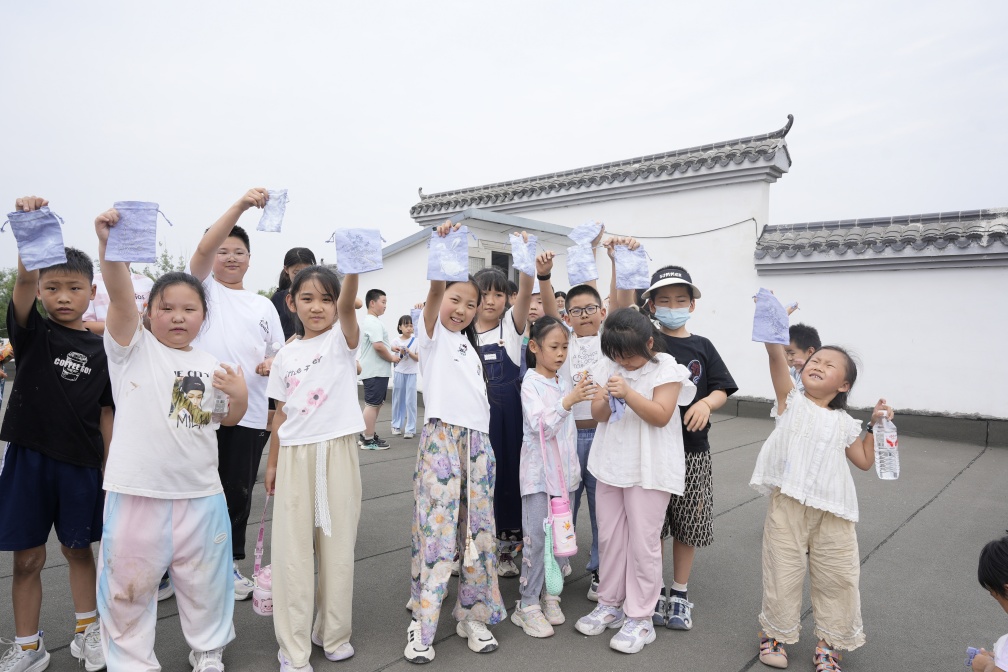 扎染工坊內,孩子們化身為小小的藝術家。他們用手中的染料和布料,大膽地揮灑著自己的創意,將原本素白的布料染成藍白相間的圖案,仿佛將天空與大海的美麗濃縮其中。每一塊布料都承載著孩子們的奇思妙想,展示著他們對色彩與美的獨特理解。