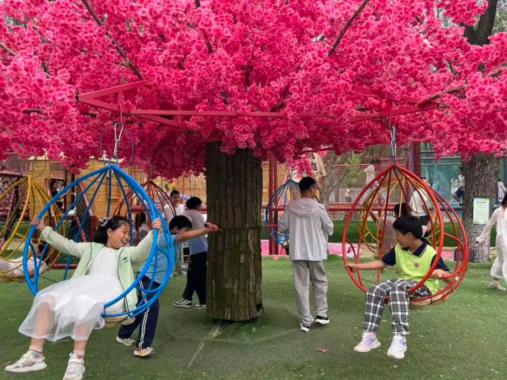 孩子們在林下樂園里盡情地釋放著自己的活力。他們在草地上奔跑嬉戲,像一群自由自在的小天使;他們在各種游樂設施間穿梭,歡聲笑語回蕩在整個樂園。陽光透過樹葉的縫隙灑在他們身上,形成一片片金色的光斑,仿佛是大自然為他們披上的一層美麗的紗衣。在這里,他們忘卻了所有的煩惱和疲憊,只享受著這片刻的自由和快樂。