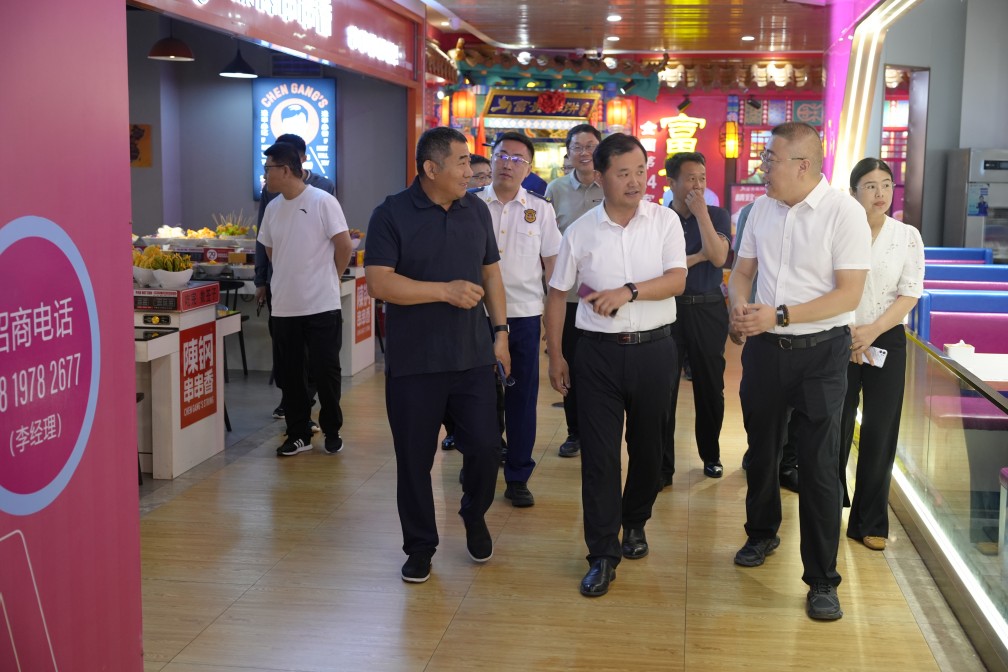 在視察過程中,張區長深入華百廣場各樓層,邊走邊看、邊問邊查,對安全管理工作進行了全方位、多角度的細致了解。他詳細詢問了華百廣場日常安全檢查頻次、安全監管設備配置情況,以及針對商戶的安全管理措施等關鍵問題;同時,對滅火器配備、消防通道暢通等情況進行了重點查看。他特別強調,規范化管理是確保安全生產的關鍵所在,華百廣場作為濟陽區首家城市綜合體,人流量大、人員密度高,是市民購物、休閑的重要場所,安全工作容不得半點馬虎。必須將各項安全舉措不折不扣地落實到位,充分發揮行業標桿的示范引領作用,為其他商業場所樹立榜樣。