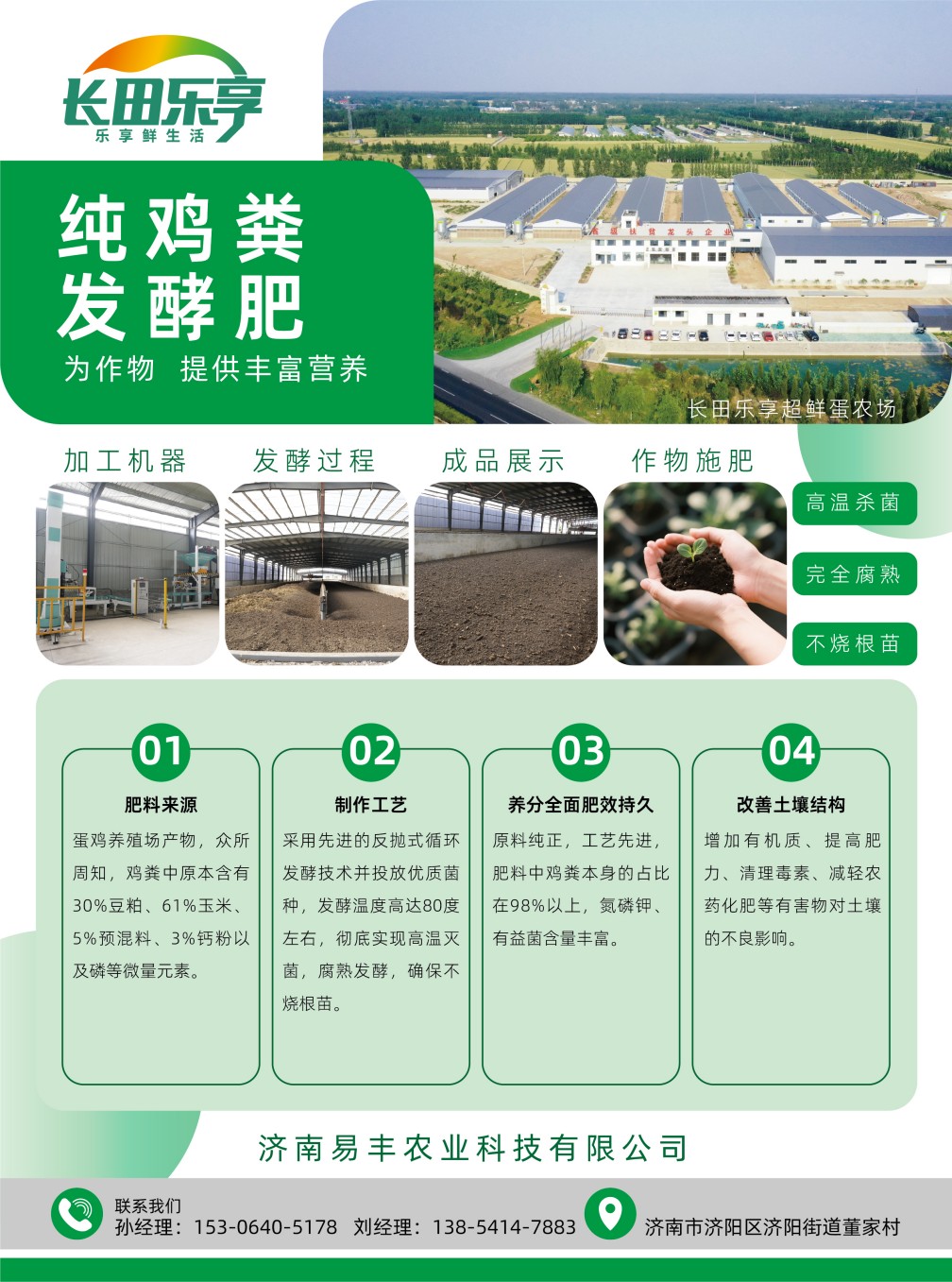 03避免有害殘留:采用家禽糞便專用高溫菌發酵劑,發酵過程中溫度可達80℃,24小時內殺滅病原菌、蟲卵及抗生素殘留,避免普通堆肥自然發酵不徹底導致的燒苗、病蟲害風險。